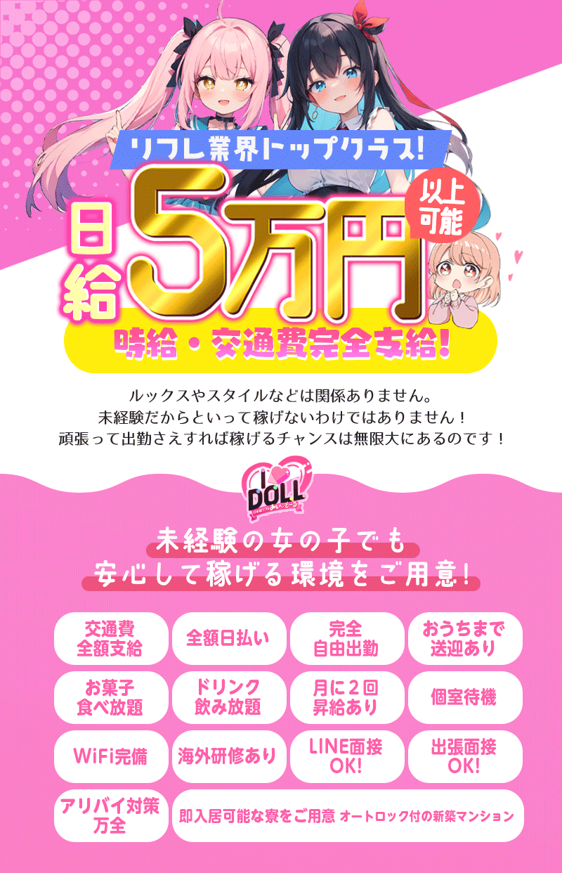 ここまで長い文章を読んで頂きありがとうございます。あいど〜るに在籍する女性は未経験からお仕事を始める女性がほどんどです。特別なスキルや経験や資格等一切必要ありません。必ず稼げて安心して働ける当店でリフレデビューしちゃいましょう!初めての方もご安心ください。スタッフ一同一から全力でサポート致します。面接のみでも交通費は支給させて頂いておりますのでお気軽にお問い合わせください!